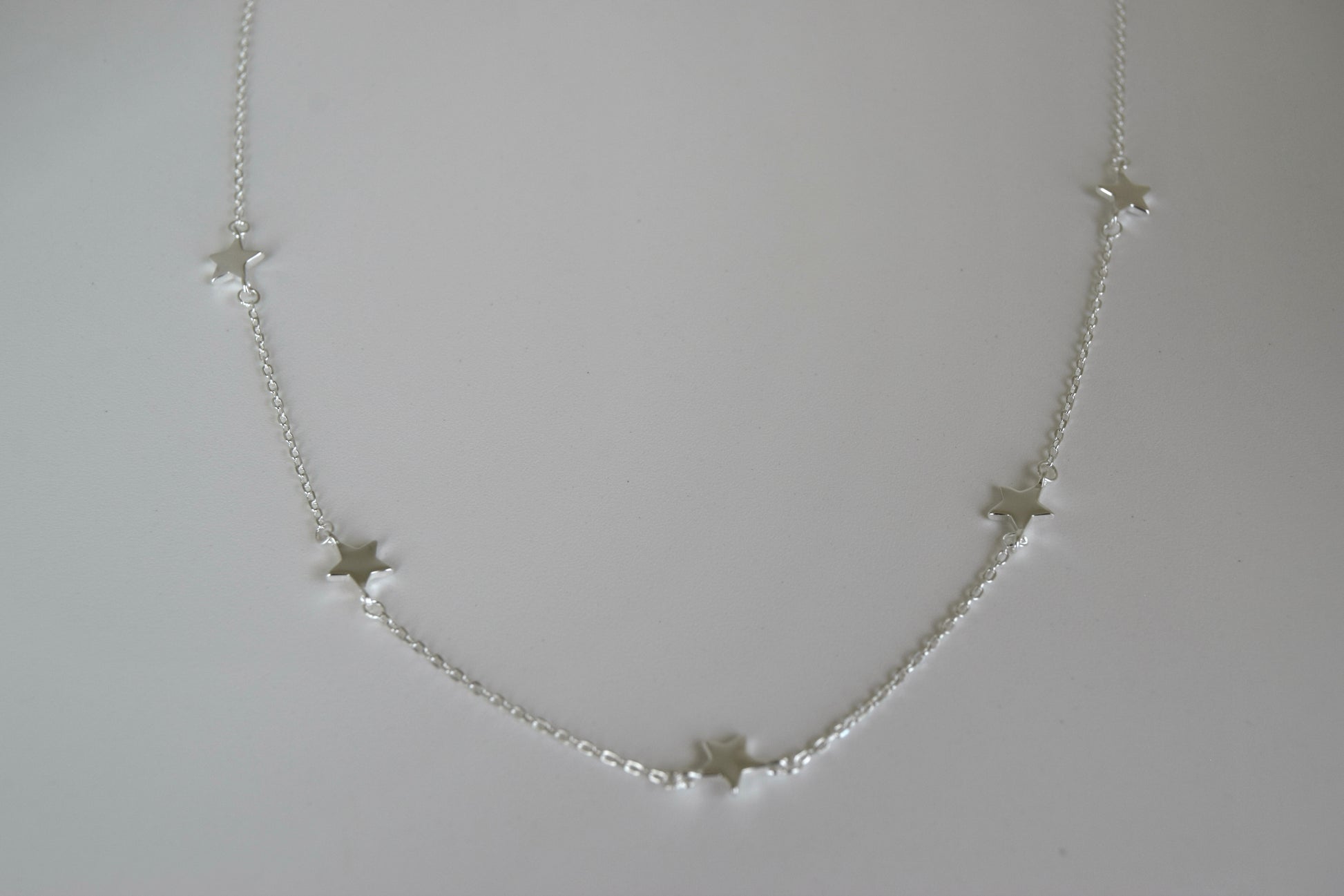 Sparkle and shine with our Multi Star Necklace! This elegant and versatile piece features five dazzling stars, perfect for adding a touch of glamour to any outfit. Make a statement and feel like a star with this must-have accessory.