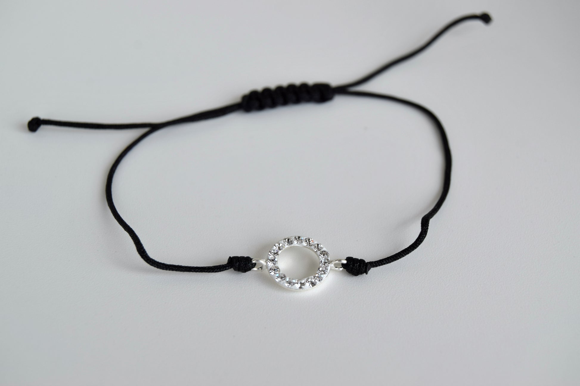 Modern and elegant, this bracelet features a sleek black band accented with a sparkling CZ crystal circle. A perfect balance of sophistication and simplicity, ideal for both everyday wear and special occasions.