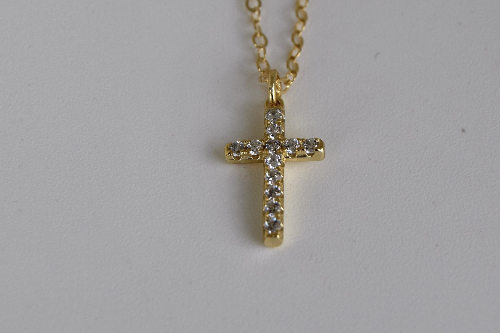 A symbol of faith and elegance, this Gold-Plated Cross Necklace features a delicate design adorned with shimmering cubic zirconia crystals. Crafted with care, it adds a touch of sparkle and meaning to your everyday look.