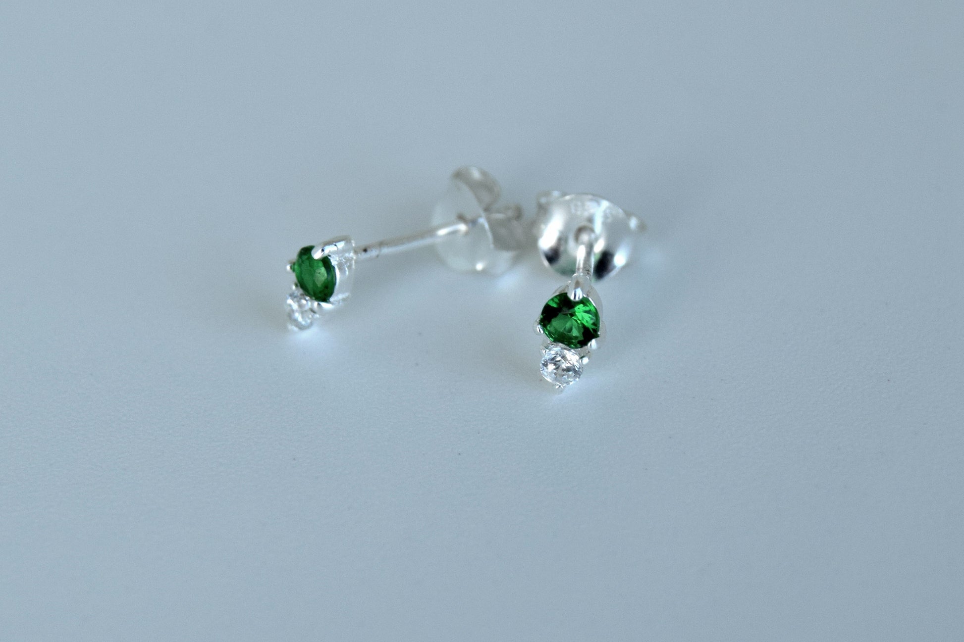 Classic and timeless, these stud earrings feature sparkling green cubic zirconia stones for a subtle pop of color. Perfect for everyday wear or to add a touch of elegance to any outfit.