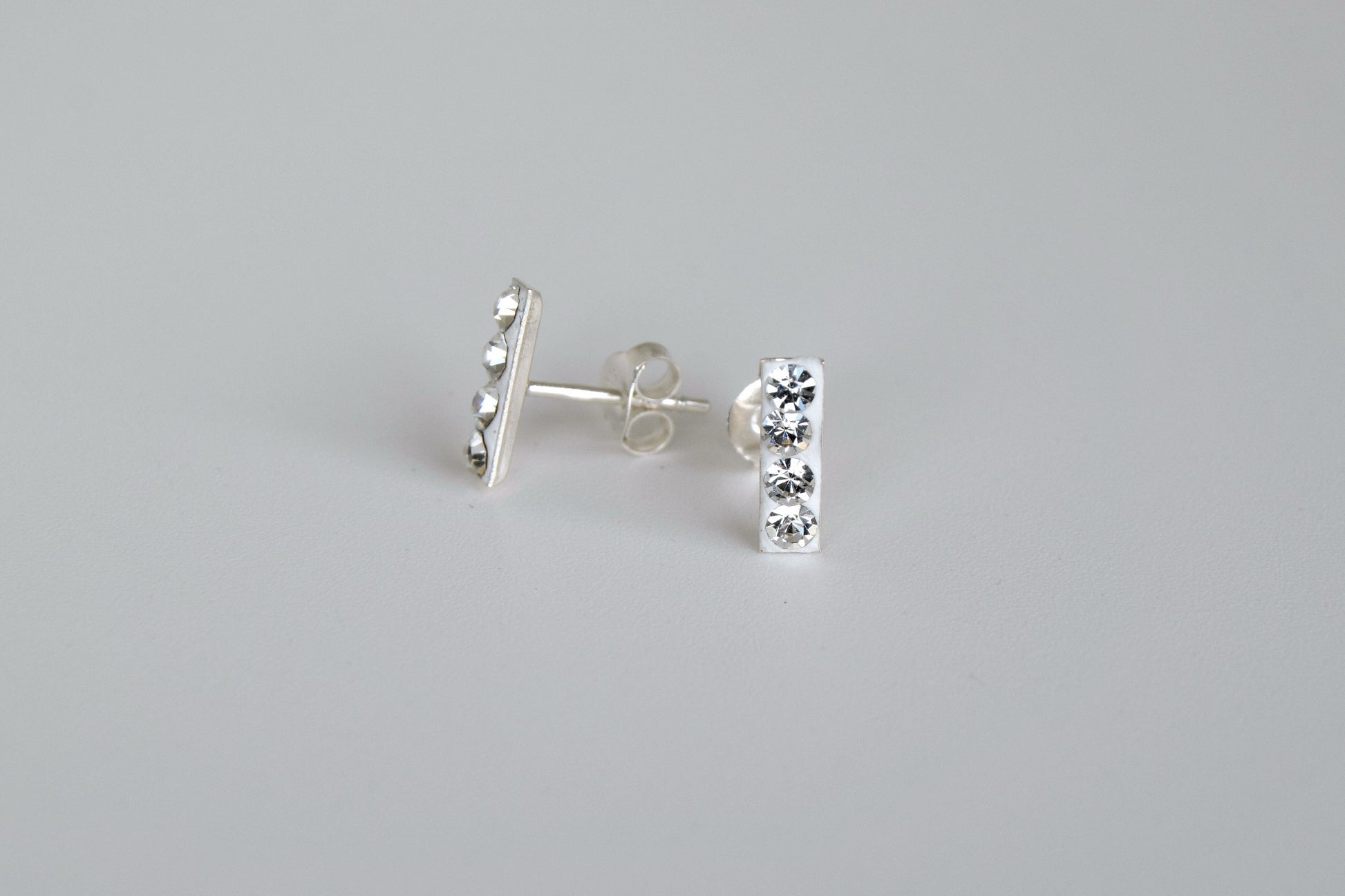 Sleek and modern, these Sterling Silver Stud Earrings feature a straight bar design accented with sparkling CZ crystals. Perfect for adding a subtle, contemporary touch of shine to everyday outfits or special occasions.