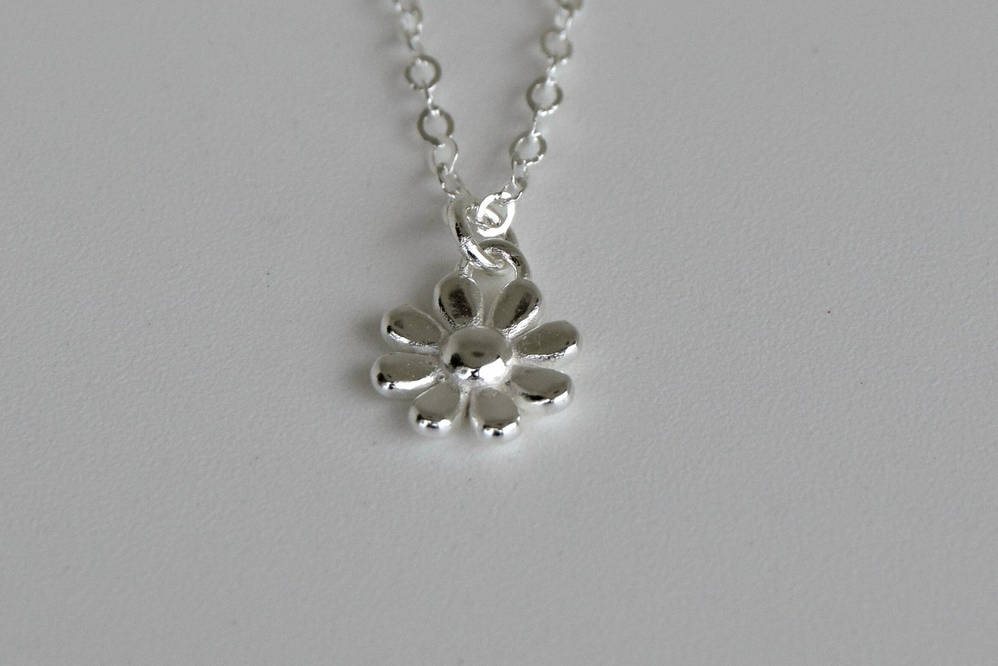 Delicate and timeless, this Sterling Silver Daisy Necklace features a finely detailed floral pendant for a subtle, elegant touch. Perfect for everyday wear or layering with other necklaces for a feminine look.