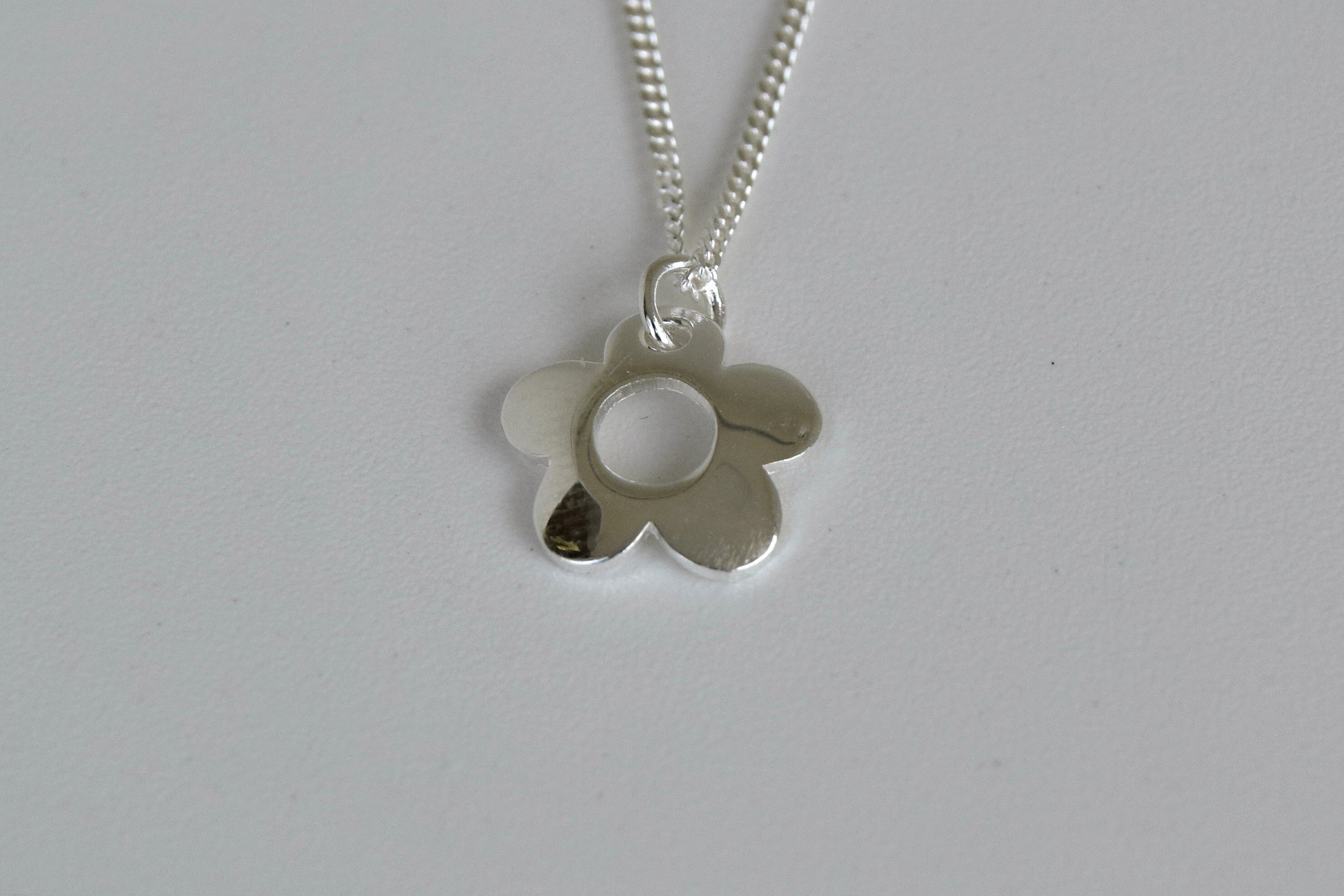 Elegant and modern, this Sterling Silver Daisy Necklace features a delicate floral pendant with an open centre design. Perfect for layering or wearing alone for a subtle, feminine statement.
