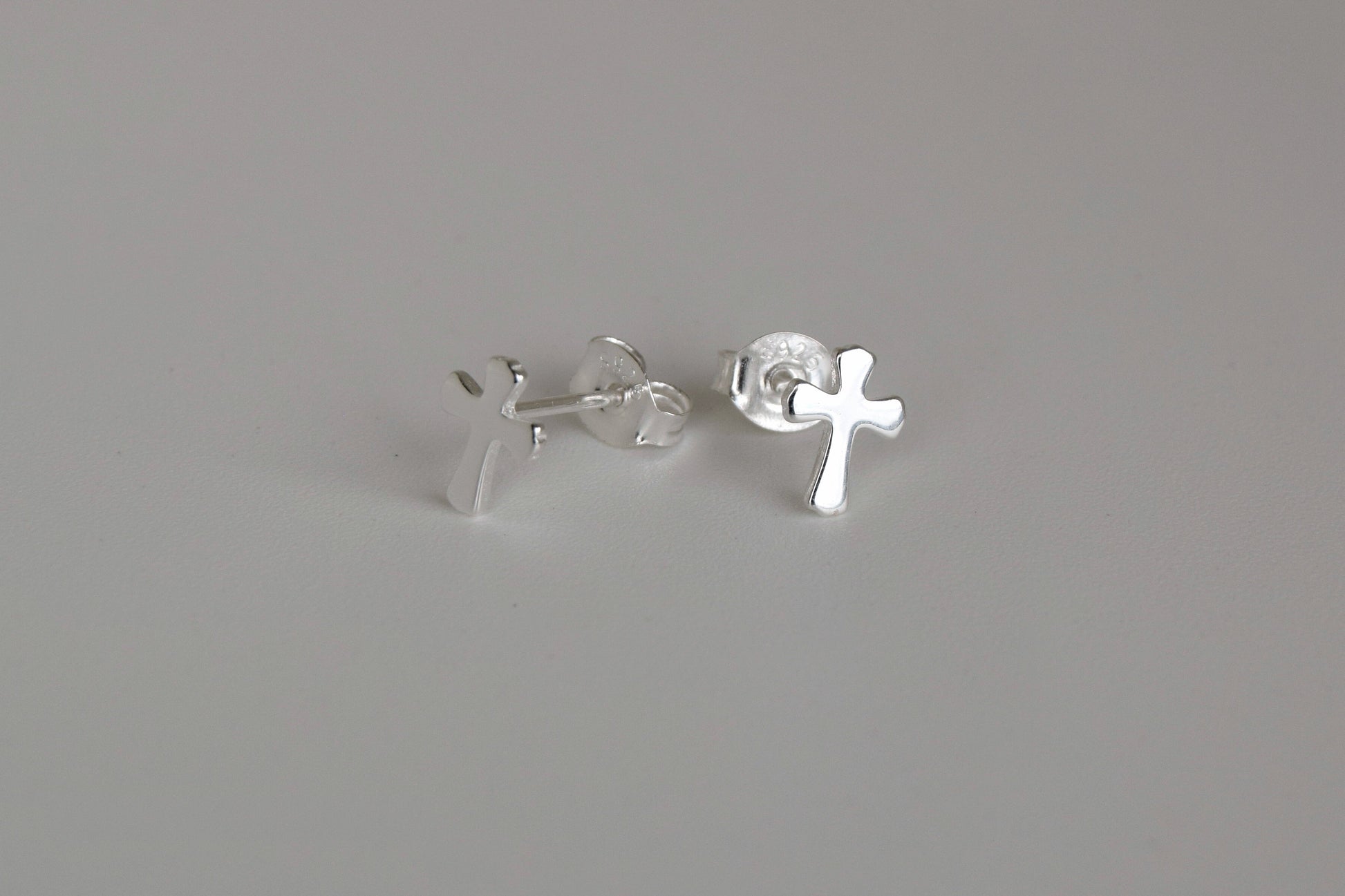 Simple and meaningful, these Sterling Silver Solid Cross Stud Earrings feature a classic polished cross design. Perfect for everyday wear or as a subtle, elegant expression of faith.
