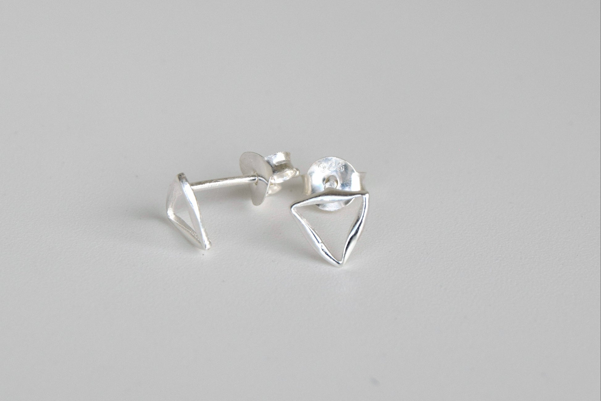 Modern and minimalist, these Sterling Silver Stud Earrings feature a unique twisted triangle design for a subtle yet striking look. Perfect for adding an edgy, contemporary touch to everyday outfits.
